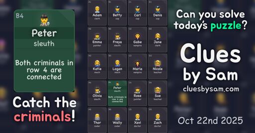 https://cluesbysam.com/I solved the daily Clues by Sam (Oct 20th 2025) in 05:24