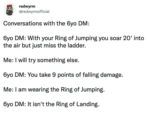 minus-squareMourningDove@lemmy.ziplinkfedilinkarrow-up7·3 days agoAt three a lot of 6 year olds playing D&D??