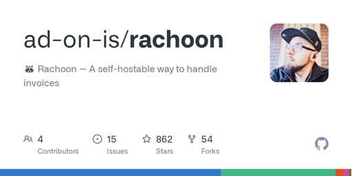 cm0002@infosec.pub to Opensource@programming.dev · 21 days agoRachoon - Self-Hostable Invoicing made simplegithub.comexternal-linkmessage-square0linkfedilinkarrow-up112arrow-down10cross-posted to: foss@beehaw.orgopensource@lemmy.mlselfhosted@lemmy.world