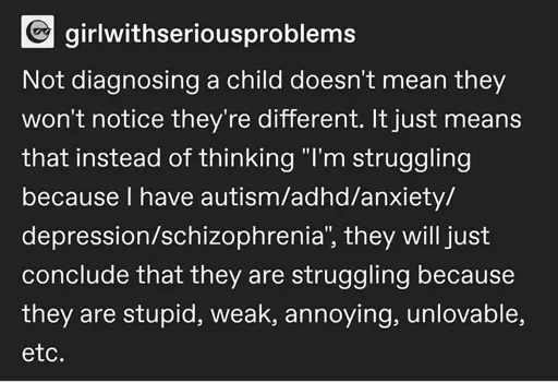 Can your child not get diagnosed and just not tell others if it doesn’t want to? I mean only because the child has the diagnosis doesn’t mean that other children or teachers or whatever need to know, does it?