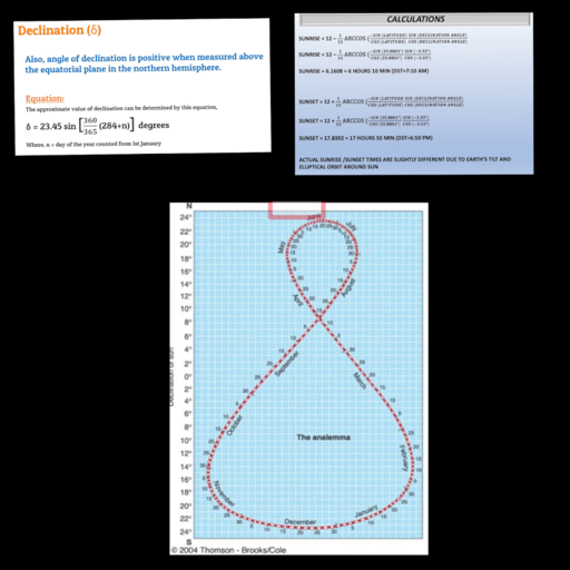 I’m specifically looking for small microcontroller implementations for a simple clock project. I want to use a good temperature compensated real time clock and/or network time protocol-only (no sunrise/sunset APIs), to calculate local solar noon, sun rise, and sunset times. Then I want to make my own local time where midnight/bedtime is simply 9 hours before sunrise on any given day. I am in special life circumstances where I have no real use for daily coordinated time. This is a little psychology experiment more than anything else. I’m super rusty on the math.