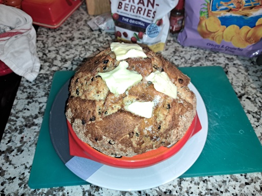 So here’s the first loaf of “Trailblazer”. (Don’t worry about the melting butter, I put a plate under it after taking the pic!)