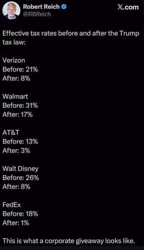 kingshrubb@lemmy.ml to Microblog Memes@lemmy.worldEnglish · 2 days agoEffective tax rates before and after the Trump tax lawlemmy.mlimagemessage-square77linkfedilinkarrow-up11.11Karrow-down17