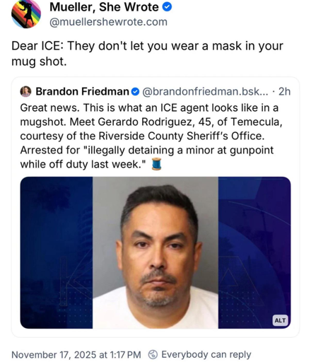 ByteOnBikes@discuss.online to THE POLICE PROBLEM@lemmy.worldEnglish · 8 days agoDetained a minor at gunpoint while off dutydiscuss.onlineimagemessage-square60linkfedilinkarrow-up1823arrow-down113