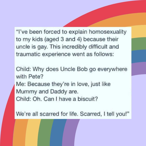 I think straight people assume explaining homosexuality means you have to tell your kids how gay sex works in explicit detail.