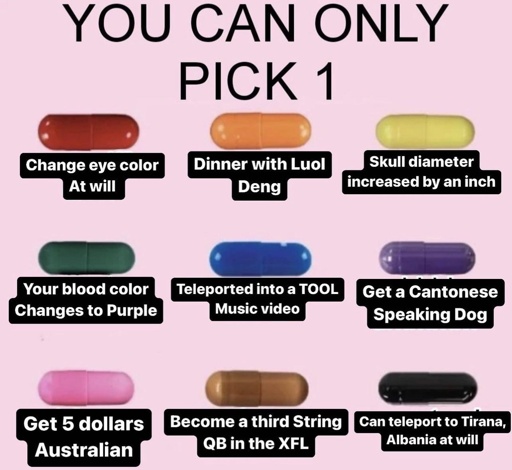 potoooooooo ☑️@lemmy.world to memes@lemmy.worldEnglish · 5 days agoWhat's your power? Choose wisely.lemmy.worldimagemessage-square240linkfedilinkarrow-up1425arrow-down132file-text