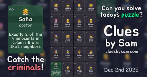 https://cluesbysam.com/I solved the daily Clues by Sam, Dec 1st 2025 (Easy), in 02:12