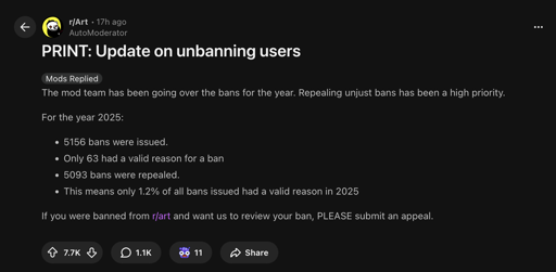 Used to mod a somewhat big sub (500k members) before getting banned off the platform and they can’t. I think it was the admins/bots flagging accounts as “ban evasion” or removing posts due to their filters and sending them to the queue, where some shitty mods just ban the account if it gets falsely flagged frequently