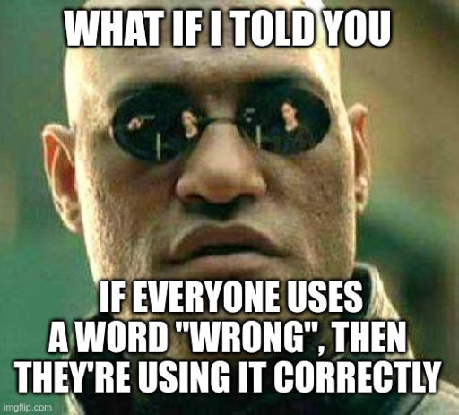 But, you’re just one person. You won’t be present for 99.9999%+ of newer usages of terms, so you’ll be impotent to effect much change on the matter. With the level of illiteracy and the anti-intellectualism that seems rampant these days, even having a widely read column on a popular platform might be insufficient to turn such a tide. Maybe at best you’d be a screenwriter for a Hollywood blockbuster that a decent portion of the population watches and you could hope for the best, but even that seems weak considering we collectively don’t even remember movie lines accurately ten or twenty years later.