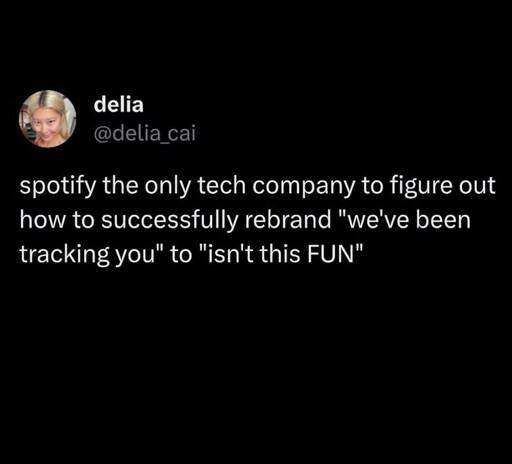 minus-squareTheProtagonist@lemmy.worldlinkfedilinkEnglisharrow-up80arrow-down1·7 days agoTo be fair, a Service like Spotify would make absolutely no sense if they would not be tracking my listening preferences to propose me the kind of music I like. Just listening to random stuff on the internet would be like radio in the good ol’ days.