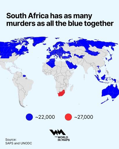 ooli3@sopuli.xyz to Map Enthusiasts@sopuli.xyz · 3 months agoSouth Africa has as many murders as all the blue togetheri.redd.itimagemessage-square18linkfedilinkarrow-up150arrow-down132