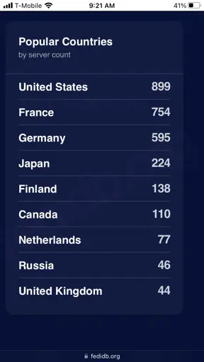I m happy that France is just behind the USA knowing that we are way less massive in number of people. I think that s cool , let democratize the fediverse nom Mather where you are ;)