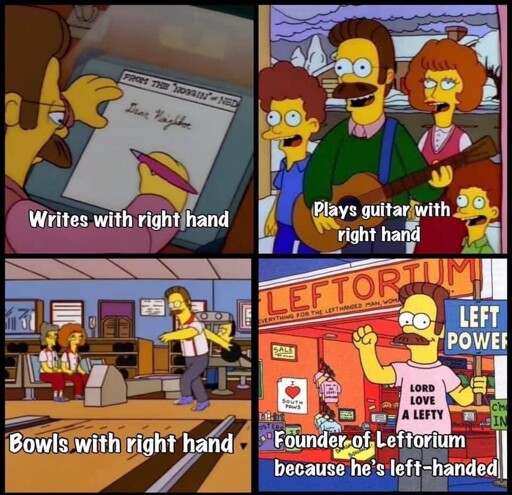 minus-squaredvlsg@lemmy.worldlinkfedilinkEnglisharrow-up1·4 months agoDrums are similar. Playing “right handed” puts your left hand on the snare, generally.