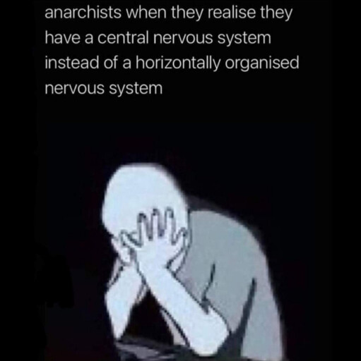 Saymaz@lemmygrad.ml to Memes@lemmygrad.ml · 21 days agoHaving a brain and a spinal cord is authoritarian.lemmygrad.mlimagemessage-square31linkfedilinkarrow-up1158arrow-down10