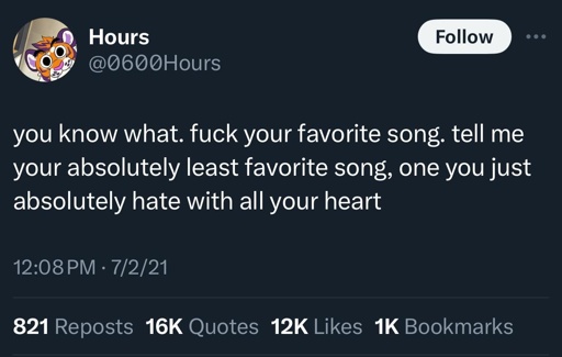 Don’t know if I can pick a singular least favorite. I have entire artists I despise for their particular vocal styles.