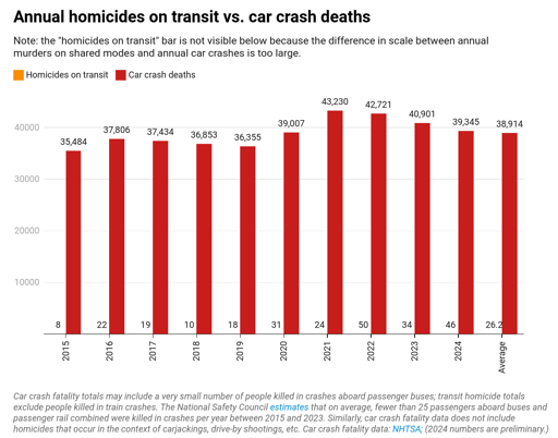 The graph shows deaths. I’m sure there are quite a few more collisions that don’t end in death, but possibly severe and lasting disabilities. You don’t see a lot of subway cars colliding with other subway cars. I’m sure plenty of people run into buses though.