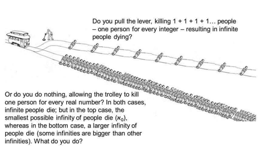 But on the bottom track. The train can reach infinity multiple times, and will do so every time it reaches a whole number. Basically, by the time you’ve reached 1, the bottom track has already killed more people than the top track ever will.